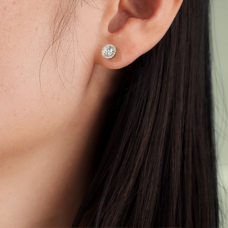 The Seline rnd earrings are set with stunning round lab-grown diamond. We prefer them set with diamonds. But the best part, is that you get to choose. The Seline rnd, as shown here, are made of gold. You are free to choose your gemstones and to customize the earrings to your liking. We carefully select each gemstone. We create your earrings by hand in our own artisan studio and make use of the latest techniques, combined with ancient craftsmanship. Easily customized to your liking with our online tool. Take these earrings set with 0.25 crt lab-grown diamond, for example. The Seline rnd earrings are passionately made by one of our master goldsmiths.Are you on a budget? Please feel free to contact us, so we can go discuss your options. We offer our earrings at guaranteed best price, because we make them to order. You won’t find such a price anywhere else!To make it easier for you, we offer a 30 day return policy. Check our terms and conditions.